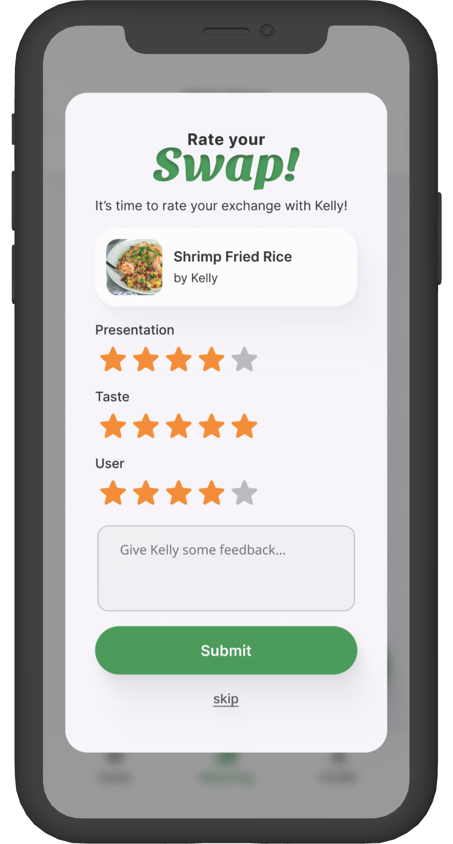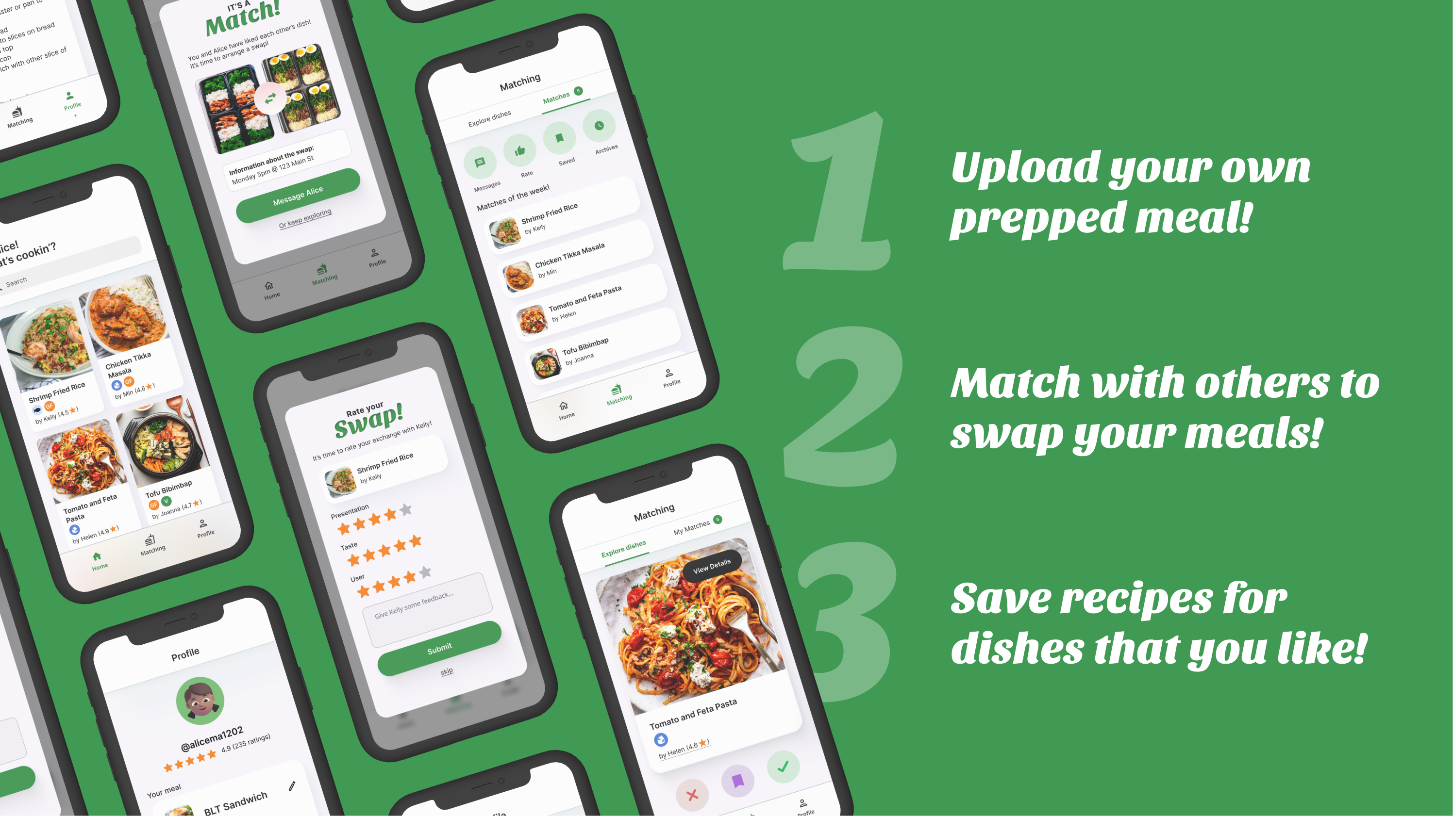 Therefore, we plan to incorporate an interactive activity within the community or close friends by enabling not only the sharing of recipes, but also the exchanging of meal preps to address the full scope of our problem.