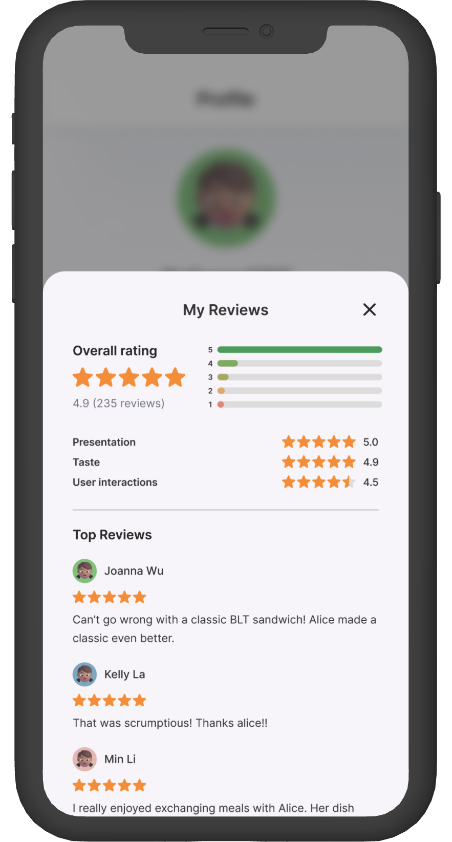 - "I think have a step for the ingredients too and having users be able to see the ingredients before meeting up to account for allergies"