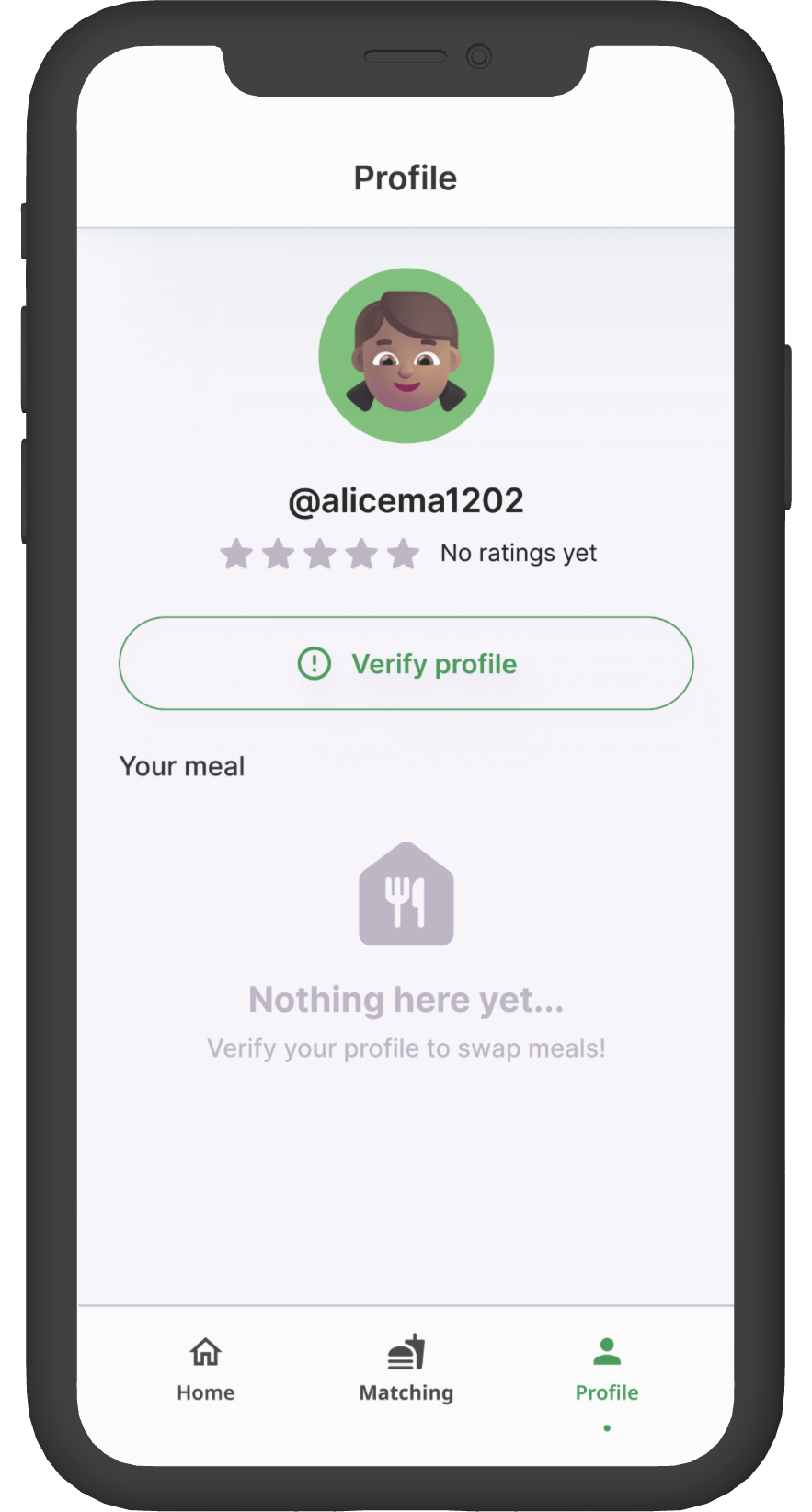 First, there's the problem of user trust because it may be difficult to trust that the meals they are receiving from the meal swaps were prepared under hygienic conditions and are safe to consume. We attempted to address this issue by adding user verification, where they need to verify their phone number, identity, and complete a food handling certification to become a member of the meal swapping community.