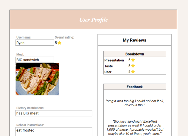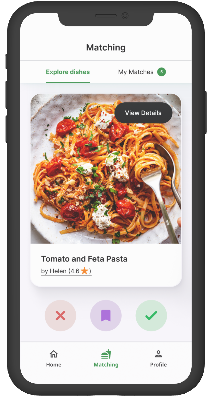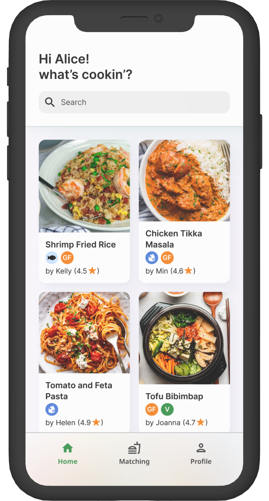 - Input dietary restrictions of the meal they created, which will show up to other users when their recipe appears on the matching screen