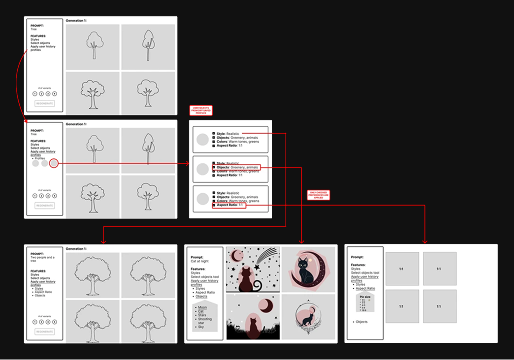 Our research began by identifying core user pain points in AI image generation. I identified three main problems to focus on solving.