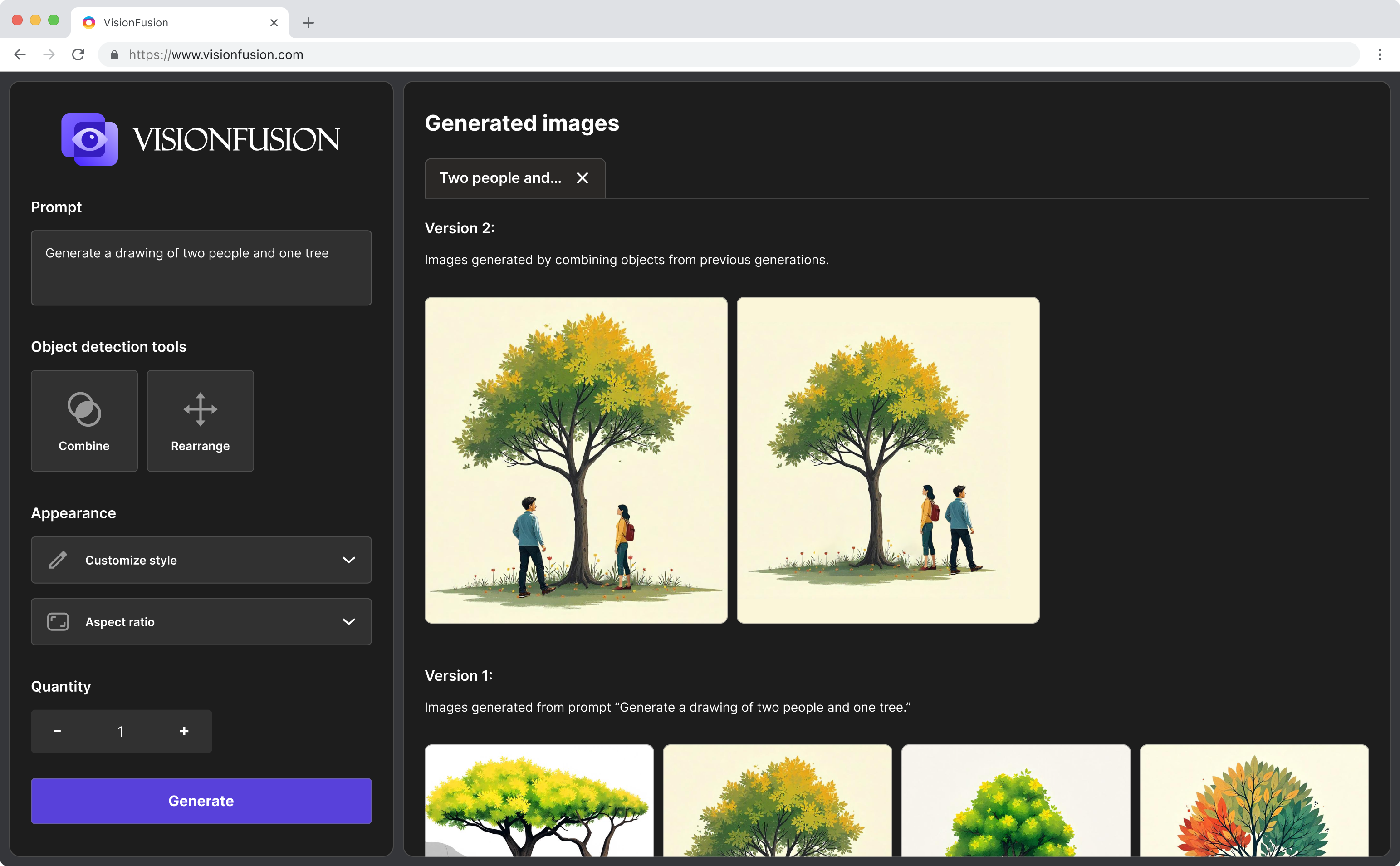VisionFusion combines AI image generation with powerful manipulation tools, enabling users to generate images and then iterate on them by combining elements, rearranging objects, and refining compositions.